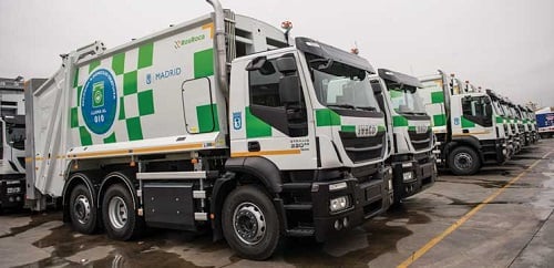 Iveco y el Ayuntamiento de Madrid han concretado la entrega de vehículos Stralis propulsados por gas natural comprimido (GNC). El Consistorio ha apostado por camiones Iveco como parte de su flota encargada de la recogida de residuos en la capital, adquiriendo 109 nuevas unidades de este camión que se produce en exclusiva en la planta de Iveco en Madrid.