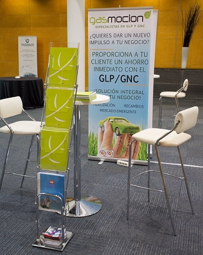 En el stand de Gasmocion S.L., donde se resolvieron todo tipo de dudas por parte del personal allí presente, contó además con la presencia de presentaciones y folletos informativos, donde se explicaban al detalle todas las cualidades de la gama de productos comercializada por la empresa valenciana: kits de transformación a GLP, kits de transformación a GNC y compresores.